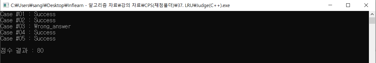 - 마지막 작업 후 캐시메모리의 상태를 가장 최근 사용된 작업부터 차례로 출력합니다.