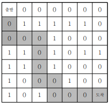 7*7 격자판 미로를 탈출하는 최단경로의 경로수를 출력하는 프로그램을 작성하세요. 경로수는 출발점에서 도착점까지 가는데 이동한 횟수를 의미한다. 출발점은 격자의 (1, 1) 좌표이고, 탈 출 도착점은 (7, 7)좌표이다. 격자판의 1은 벽이고, 0은 도로이다. 격자판의 움직임은 상하좌우로만 움직인다. 미로가 다음과 같다면